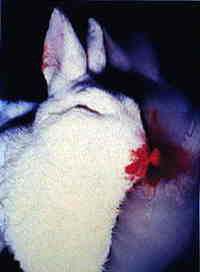 Nach der Ansteckung treten nach einem bis drei Tagen die Krankheits-erscheinungen auf: Blut läuft aus der Nase, die Kaninchen bekommen keine Luft mehr und ersticken.